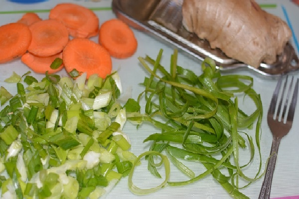 1取蔥、薑、胡蘿蔔切成蔥末(或片狀) 備用