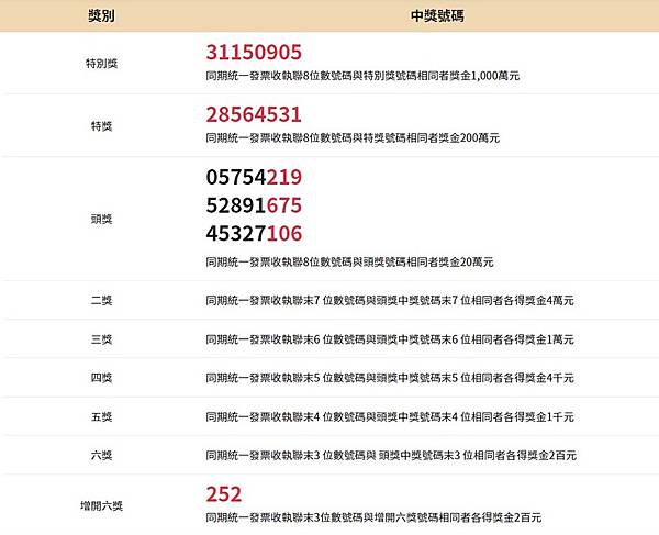 110年11-12月中獎號碼 雲端中獎號碼